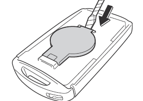 7. Setzen Sie eine neue Batterie so in die Fernbedienung ein, dass der Pluspol nach oben zeigt.