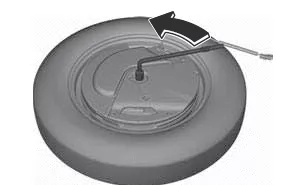 Drehen Sie die Reserveradbefestigungsschraube gegen den Uhrzeigersinn und nehmen Sie das Reserverad heraus.