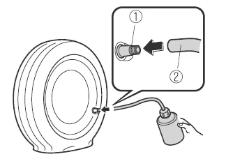 Falls die Flasche mit der Reifenreparaturflüssigkeit nach Anbringen des Schlauchs geschüttelt wird, kann am Schlauch Flüssigkeit austreten. Es ist möglich, dass sich ausgetretene Reifenreparaturflüssigkeit nicht von Kleidern und anderen Gegenständen entfernen lässt.