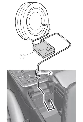 Für die Kontrolle des Reifendrucks mit dem Manometer des Kompressors muss der Kompressor ausgeschaltet sein.