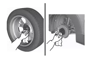 6. Blockieren Sie das dem defekten Rad diagonal gegenüberliegende Rad. Zum Blockieren eines Rads müssen Sie Radkeile vorne und hinten am Rad unterlegen.