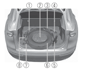 Das Reserverad und die Werkzeuge sind an den in der Abbildung gezeigten Stellen verstaut.