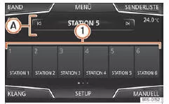 Kanalinfo wird in der oberen Hälfte des Bildschirms über den Speichertasten →Abb. 179 A angezeigt.