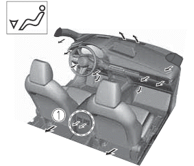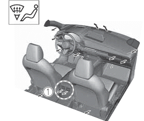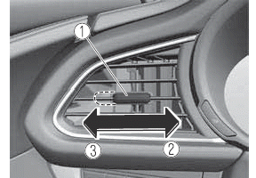 Die Ziffer in der Abbildung markiert den Luftauslass auf der linken Seite des Kombiinstruments. Die Luftstromrichtung des Luftauslasses auf der rechten Seite des Kombiinstruments lässt sich symmetrisch zur Luftstromrichtung des Luftauslasses auf der linken Seite einstellen.
