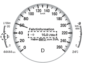 Der momentane Kraftstoffverbrauch, errechnet aus dem verbrauchten Kraftstoff und der zurückgelegten Wegstrecke, wird angezeigt.