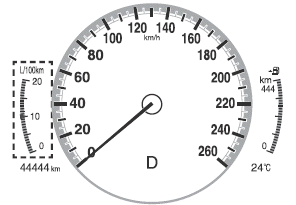 Der durchschnittliche Kraftstoffverbrauch wird minütlich anhand der Gesamtkilometer auf dem Tageskilometerzähler und dem Gesamtkraftstoffverbrauch berechnet.