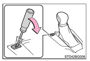 5. Drücken Sie die Umgehungstaste für die Schaltsperre, während Sie die Taste am Schaltknauf drücken.