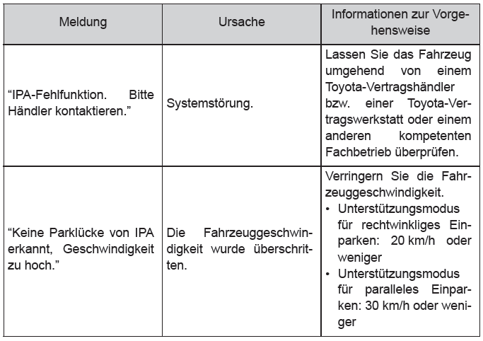 Toyota C-HR / Fahren / Verwenden der Fahrunterstützungssysteme / S-IPA (Simple Intelligent Parking Assist System)