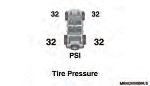 HINWEIS: Beim Aufpumpen warmer Reifen muss der Reifen möglicherweise um bis zu 28 kPa (4 psi) über den laut Sicherheitsplakette empfohlenen Reifendruck für kalte Reifen aufgepumpt werden, damit die TPMS-Warnleuchte erlischt.
